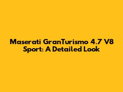 Maserati GranTurismo 4.7 V8 Sport: A Detailed Look