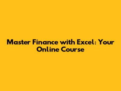 Master Finance With Excel: Online Course