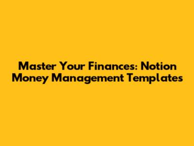 Master Your Finances: Notion Money Management Templates