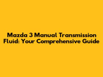 So, there you have it, folks! Everything you need to know about manual transmission fluid for your Mazda 3. Remember to use the right type of fluid, change it regularly, and keep an eye out for any signs of trouble. By taking good care of your transmission, you'll ensure smooth shifting, a longer lifespan for your car, and a more enjoyable driving experience. Regular maintenance is key, so make it a part of your routine. Happy driving! Don't hesitate to consult your owner’s manual or a trusted mechanic if you have any questions or concerns. By understanding and maintaining your manual transmission fluid, you are investing in the long-term health and performance of your Mazda 3. Proper care not only enhances the driving experience but also preserves the value of your vehicle. Prioritize regular fluid changes and inspections, and your Mazda 3 will reward you with years of reliable and enjoyable performance. Keeping your transmission in top shape is an investment in your vehicle's longevity and your own driving pleasure. By following the guidelines outlined in this article, you can maintain your Mazda 3's smooth shifting and ensure its optimal performance for years to come. Remember, a little care and attention can go a long way in preserving the health and value of your vehicle.