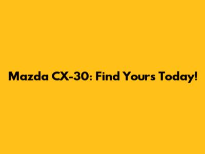 Mazda CX-30: Find Yours Today!