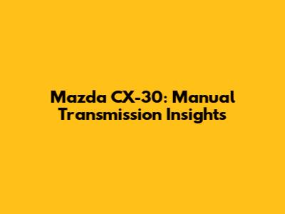 Mazda CX-30: Manual Transmission Insights