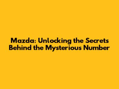 Mazda: Unlocking The Secrets Behind The Mysterious Number