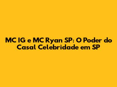 MC IG e MC Ryan SP, duas figuras icônicas do cenário musical e cultural de São Paulo, formam um casal que transcende a esfera da música. Eles se tornaram verdadeiros casais celebridades, com grande influência e um impacto significativo na cena paulistana. Mas, o que torna esse casal tão especial e relevante? Vamos mergulhar no universo de MC IG e MC Ryan SP, explorando suas carreiras, seus relacionamentos e o impacto que eles causam.