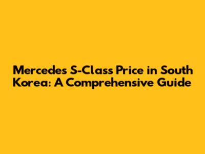 Mercedes S-Class Price In South Korea: A Comprehensive Guide