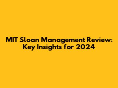 MIT Sloan Management Review: Key Insights For 2024