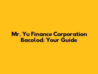 Mr. Yu Finance Corporation Bacolod: Your Guide
