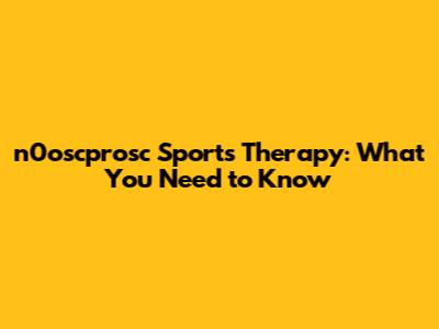 N0oscprosc Sports Therapy: What You Need To Know