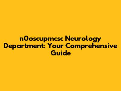 N0oscupmcsc Neurology Department: Your Comprehensive Guide