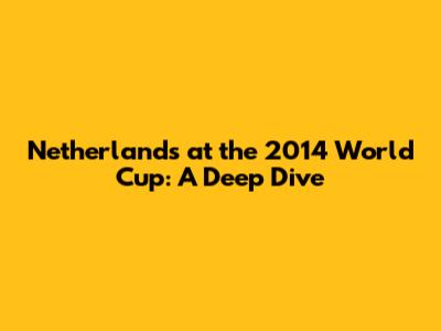 Netherlands At The 2014 World Cup: A Deep Dive