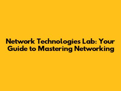 Network Technologies Lab: Your Guide To Mastering Networking