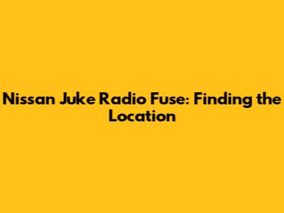Nissan Juke Radio Fuse: Finding The Location