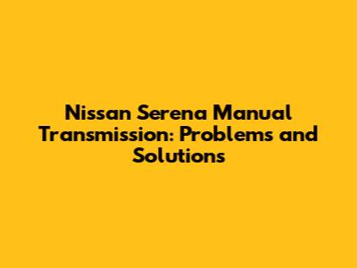 Nissan Serena Manual Transmission: Problems And Solutions