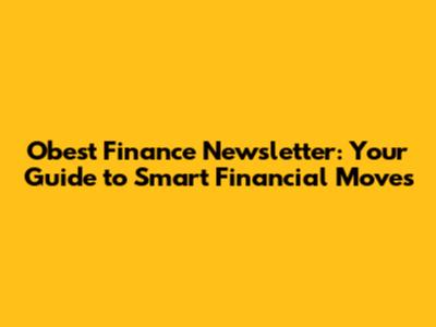 Obest Finance Newsletter: Your Guide To Smart Financial Moves