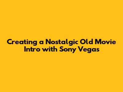 Old Movie Intro With Sony Vegas: A Nostalgic Guide