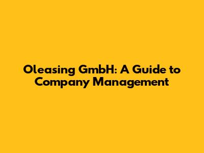 Oleasing GmbH: A Guide To Company Management