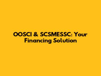 OOSCI & SCSMESSC: Your Financing Solution