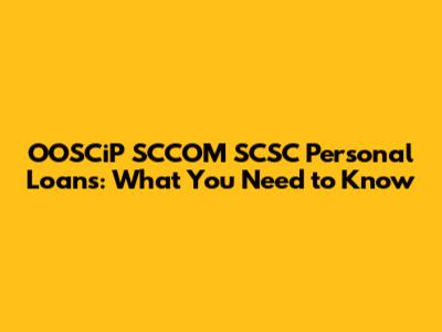 OOSCiP SCCOM SCSC Personal Loans: What You Need To Know