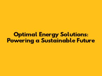 Optimal Energy Solutions: Powering A Sustainable Future
