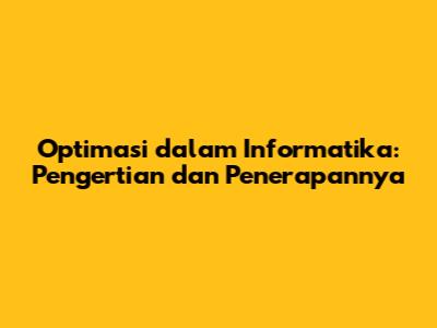 Optimasi Dalam Informatika: Pengertian Dan Penerapannya
