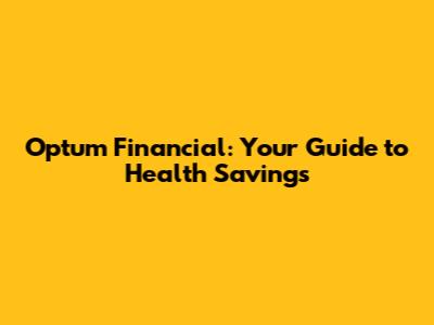 Optum Financial: Your Guide To Health Savings