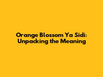 Orange Blossom Ya Sidi: What Does It Mean?