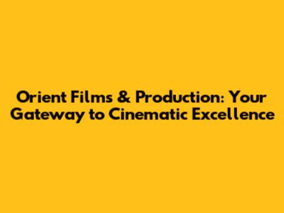 Orient Films & Production: Your Gateway To Cinematic Excellence