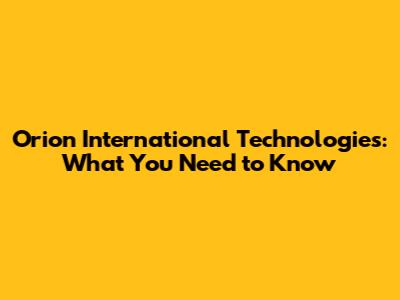 Orion International Technologies: What You Need To Know