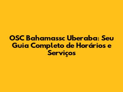 OSC Bahamassc Uberaba: Tudo Sobre Horários E Serviços