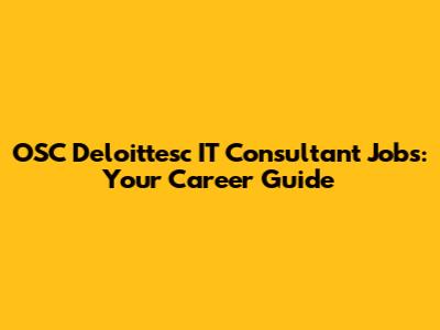 OSC Deloittesc IT Consultant Jobs: Your Career Guide