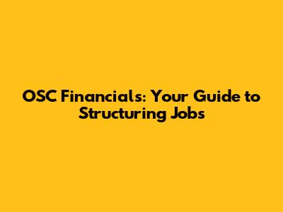 OSC Financials: Your Guide To Structuring Jobs