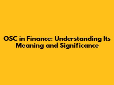 OSC In Finance: Understanding Its Meaning And Significance