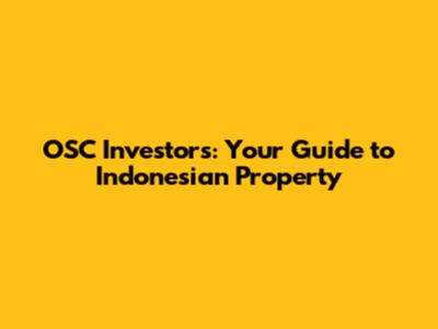 OSC Investors: Your Guide To Indonesian Property