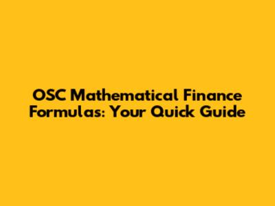 OSC Mathematical Finance Formulas: Your Quick Guide
