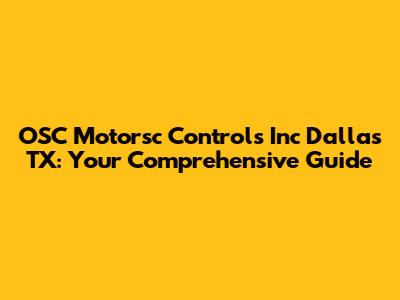 OSC Motorsc Controls Inc Dallas TX: Your Comprehensive Guide