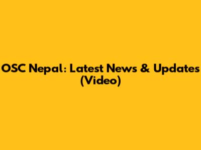 OSC Nepal: Latest News & Updates (Video)