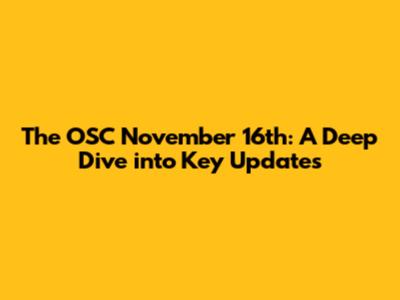 The OSC November 16th: A Deep Dive into Key Updates