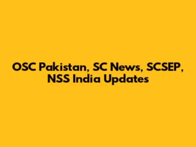 OSC Pakistan, SC News, SCSEP, NSS India Updates