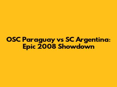 OSC Paraguay Vs SC Argentina: Epic 2008 Showdown