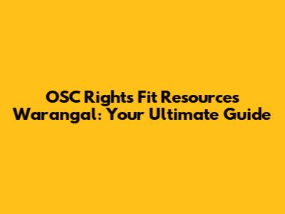 OSC Rights Fit Resources In Warangal: Your Guide