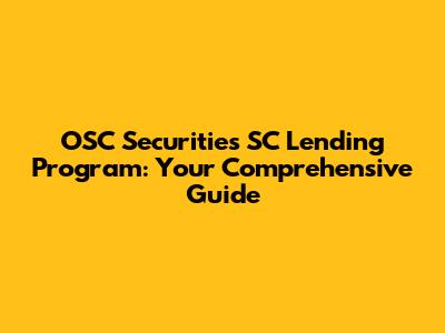 OSC Securities SC Lending Program: Your Guide