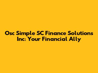 Osc Simple SC Finance Solutions Inc: Your Financial Ally