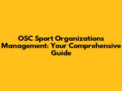 OSC Sport Organizations Management: Your Comprehensive Guide