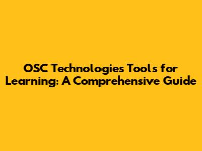 OSC Technologies Tools For Learning: A Comprehensive Guide