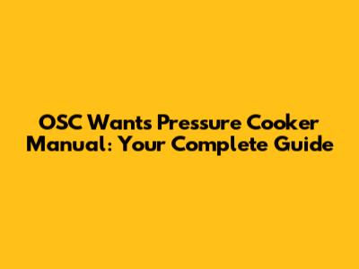 OSC Wants Pressure Cooker Manual: Your Complete Guide