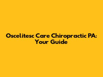 Oscelitesc Care Chiropractic PA: Your Guide