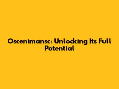 Oscenimansc: Unlocking Its Full Potential