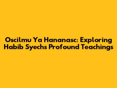 Hey guys, let's dive into something really special today: the world of Oscilmu Ya Hananasc, a spiritual gem often associated with Habib Syech bin Abdul Qadir Assegaf. This isn't just any song or chant; it's a doorway to deeper understanding and connection. We're going to break down what Oscilmu Ya Hananasc is all about, why it resonates with so many, and how it can touch your own journey of self-discovery. If you're looking for a dose of peace, reflection, and maybe even a bit of enlightenment, you're in the right place. So, let's get started and explore the beauty of this age-old wisdom!
