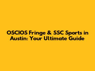 OSCIOS Fringe & SSC Sports In Austin: Your Ultimate Guide