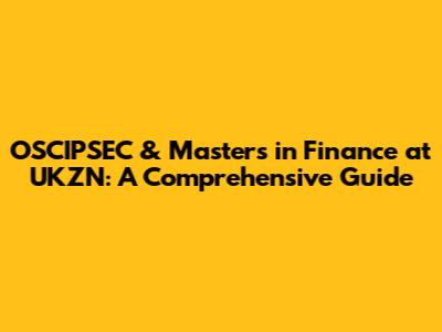 OSCIPSEC & Master's In Finance At UKZN: A Comprehensive Guide